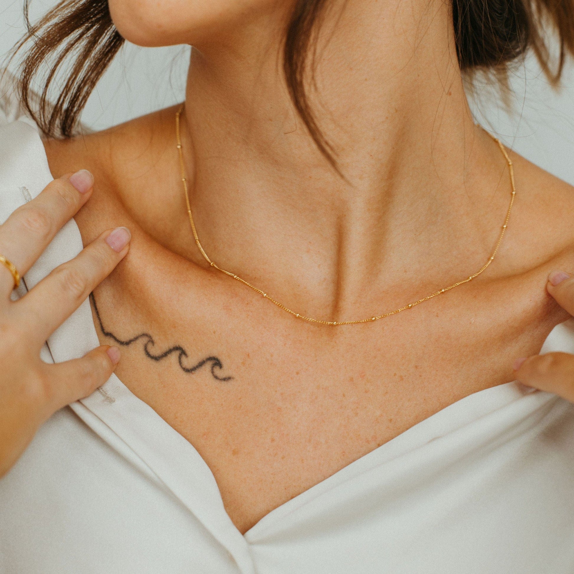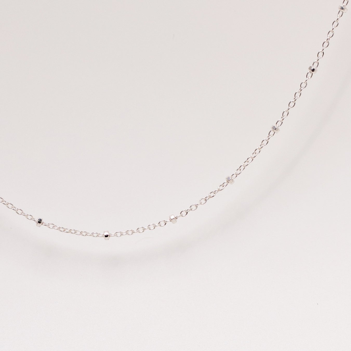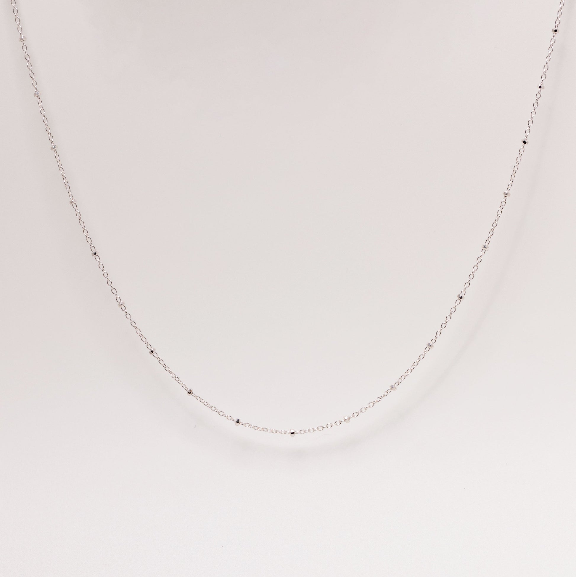 The Maya Necklace features a very thin and dainty beaded satellite chain. The Maya Necklace looks cute layered or on its own. Add a pendant or keep it simple!